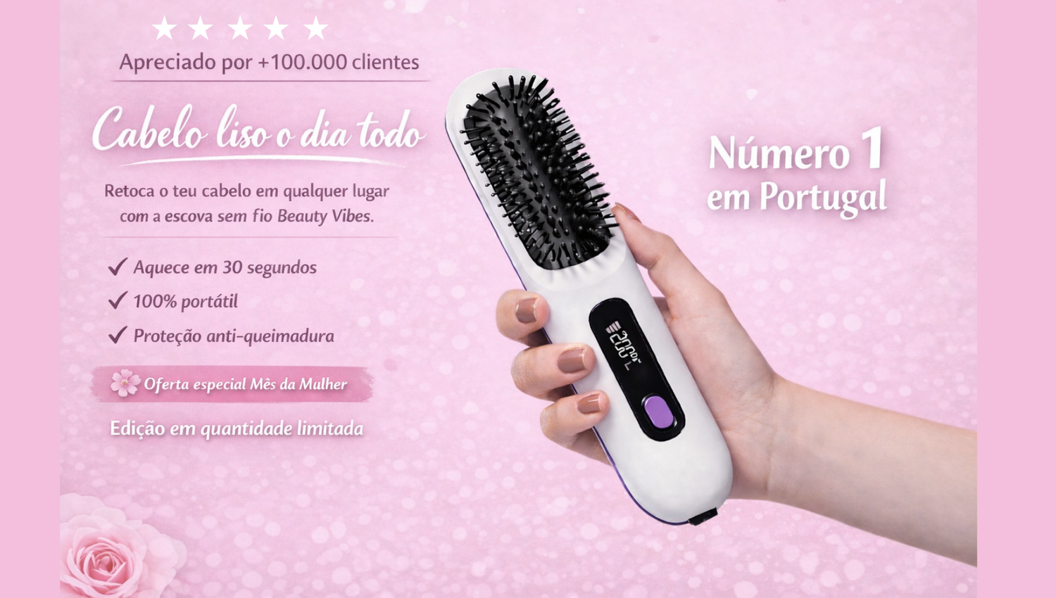 Descubra a primeira escova alisante profissional sem fios. Tecnologia iónica, calor inteligente, resultados profissionais instantâneos. Liberdade total para pentear o cabelo onde quiser, quando quiser.
